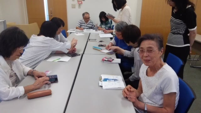 白鳩会 · 2018/06/12 (報告)6/4「スマホ・タブレット教室」 6月4日(月)午後1時30分から、教化部3階研修室で、白鳩会IT対策部主催のスマホ・タプレット教室を開催しました。 参加者計12名(うち男性2名)、各自スマートフォンやタブレットをお持ちいただき、プロジェクト型組織(SNIオーガニック菜園部、SNI自転車部、SNIクラフト倶楽部)に入部する方法や、LINE、Facebookの利用方法を楽しく学びました。 終了後、お茶とお菓子をつまみながら楽しくおしゃべりしました。 ご参加くださった皆様、ありがとうございました。 白鳩会 tagPlaceholderカテゴリ: shirohatokai, news