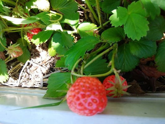 イチゴは小さいですが、次々実を付けます。