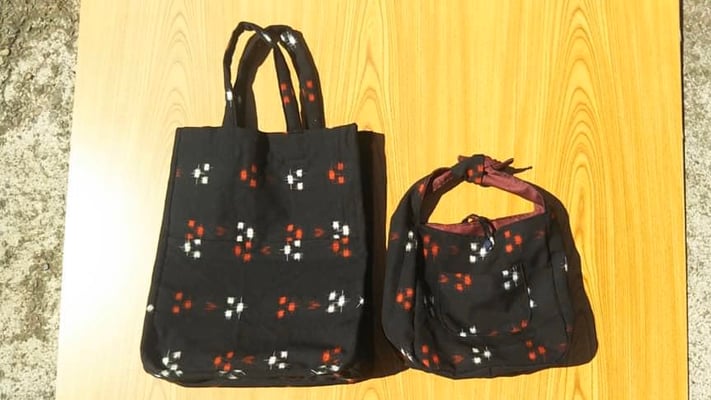 一週間位で(時間を見つけ)義姉からもらったカスリの着物から袋物を二つ作り、とても楽しかったです。