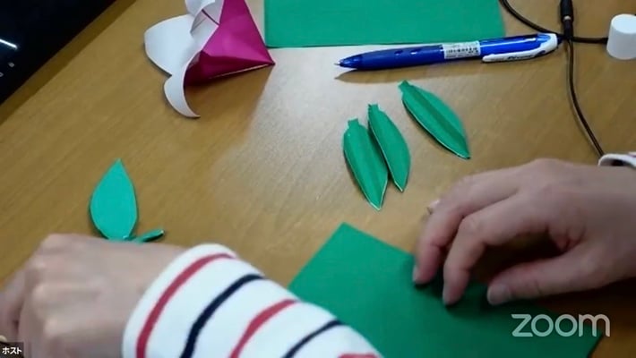 クラフトタイムでは、9月の敬老の日にちなんで、おじいちゃんとおばあちゃんに感謝の気持ちを込めて「ユリの花を作ろう」でした。折り紙でユリの花を折り、葉っぱを作り、茎は竹串を芯にして緑のテープを巻いて完成!みんな素敵なユリの花を作りました。最後に感謝のメッセージも添えました。