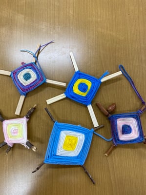 みんな説明をしっかり聞いて毛糸を丁寧に枝に巻き付け、四角の模様を作って、素晴らしいお守りが出来上がりました!ぜひ、お友達にも教えてあげて、家族にも作ってあげてください。