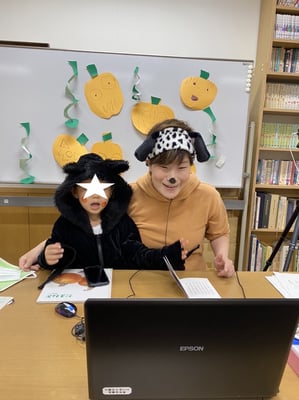 ウェルカムタイムの後、ゆっこお姉さんにハロウィンのお話をしていただきました。その後、秋は収穫の季節なので、「たまねぎ」の絵本を読んでもらいました。