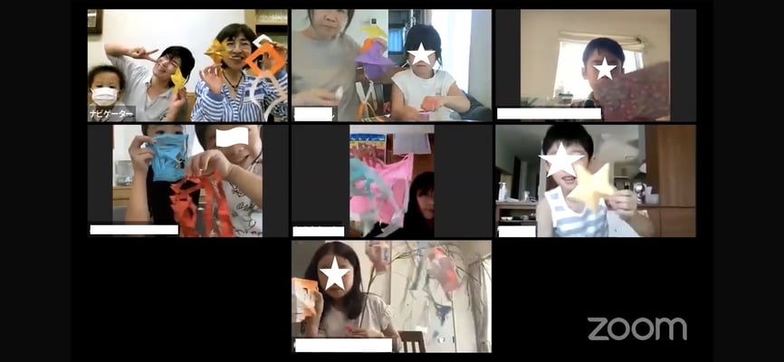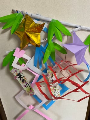 クラフトは「七夕飾りを作ろう!」をテーマに、星や網飾り、手品の四角、笹の葉などを作りました♪