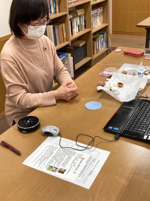 実習終了後は参加者お一人ずつに作品を見せていただきながら、動画や実習の感想を話し合いました。事前に送られたキットのおまけとして枝付きの棉花も入っていたので、中から種を取り出して栽培してみたい、棉の感触があたたかくて心地よい、昔クルミで味付けしたお餅を食べた事を思い出して懐かしい気持ちになった等、様々な感想をいただきました。ご参加くださった皆様、ありがとうございました。