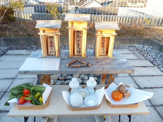 12月にしては暖かい陽射しに包まれましたが、時折吹く冷たい風に背すじが伸びます。私は司会のお役でしたので祭司、祭員の側で御祭りを見守る事ができました。