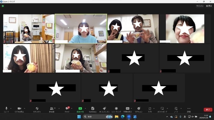 実習終了後、動画とカップケーキ作りの感想を話し合いました。