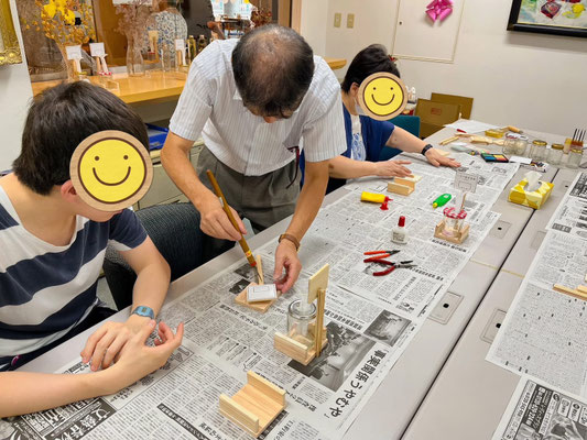 当日はS講師のご指導のもと、木材や空き瓶を利用してオリジナルの貯金箱を作りました。講師が事前に木材の加工や空き瓶の準備をしてくださり、参加者はスムーズに製作を楽しむことができました。