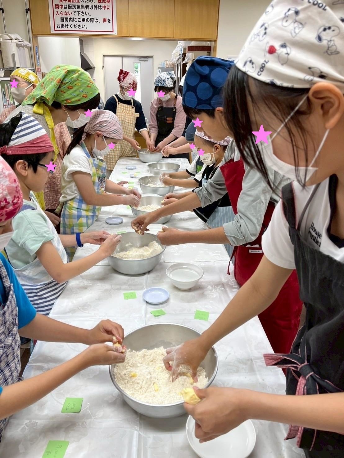 参加者は26名でした!(内訳:幼児1名、小学生6名、中高生3名、大学生1名、保護者7名、運営8名) 粉からパン生地を作りました。皆んな力いっぱいこねて、それを小さく丸めました。...